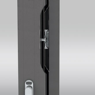 - An integrated pass through panel with a lever-operated multiple locking system, lock and profile cylinder can be provided