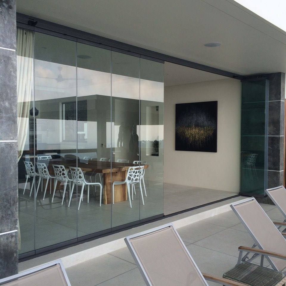 • Frame less all-glass slide and turn system