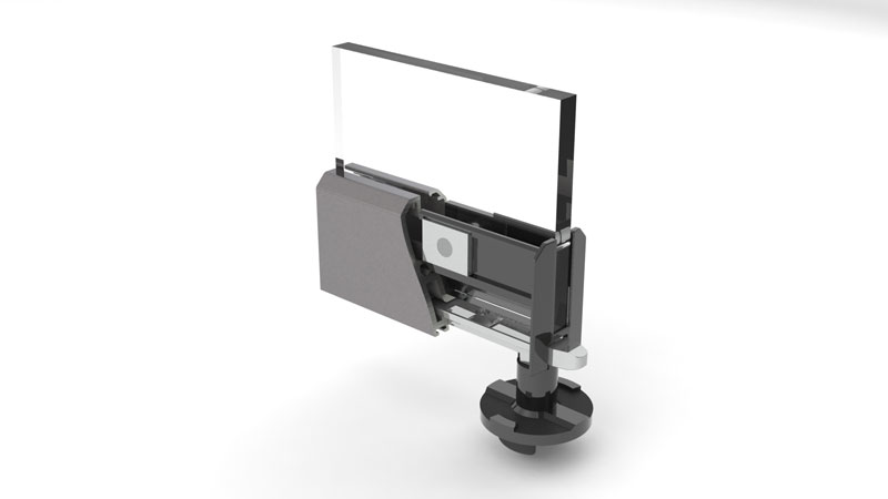 - แผ่นกระจกถูกยึดด้วยสกรูแบบปิดหัวทั้งด้านบนและด้านล่าง
